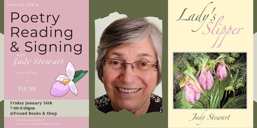 Join Local Author Judy Stewart at Found Books and Shop for an evening filled with poetry, short stories, and comforting chats.
