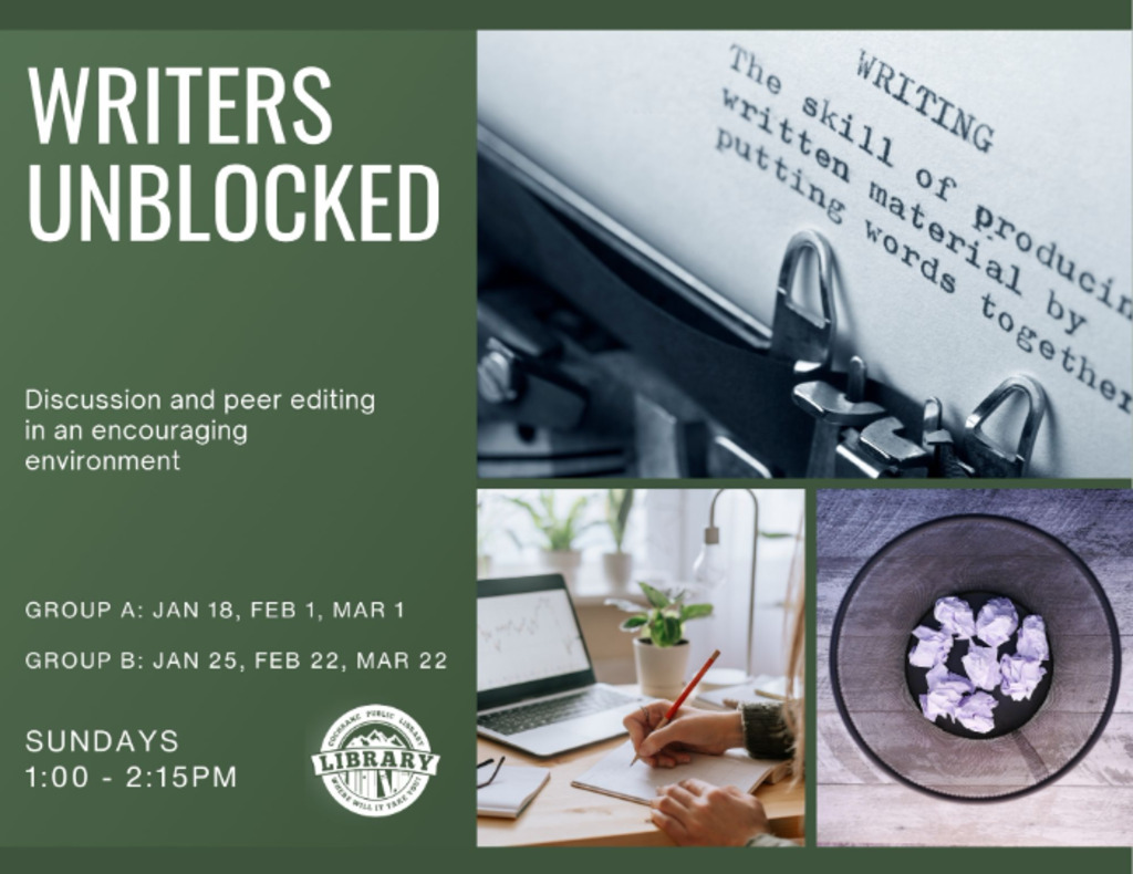 Are you a writer looking to practice your craft, connect with fellow creatives, and build a community? Then you’d be a perfect fit for our new adult writers’ group, Writers Unblocked! Join us on Sunday afternoons to share your work and ideas, get feedback from your peers, and explore new stories! All levels of experience and genres welcome!