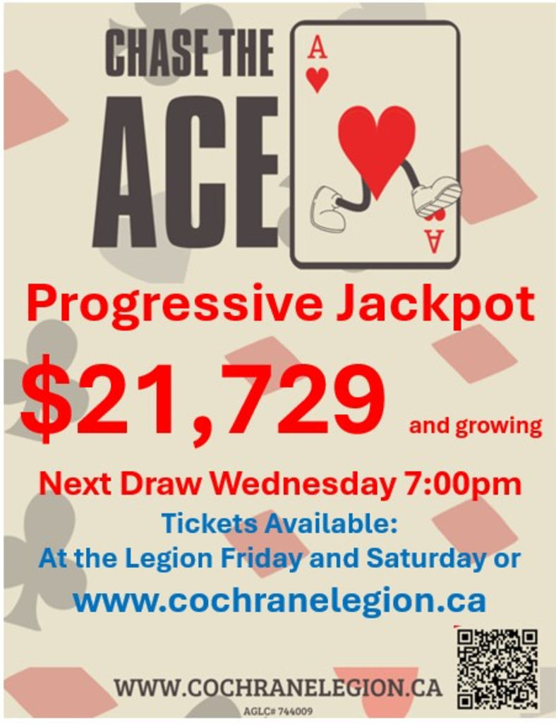 The Cochrane Legion is looking for your help in finding the "Ace of Hearts" hiding in one of the 35 envelopes remaining on our Chase the Ace board.