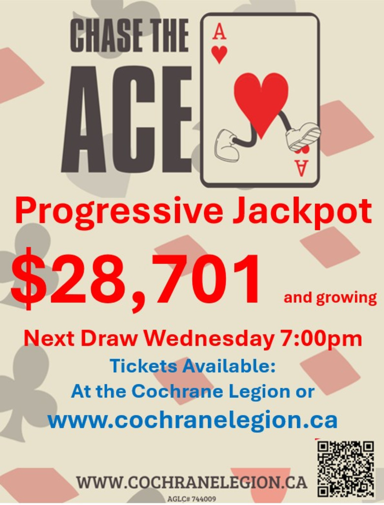 The Cochrane Legion is looking for your help in finding the "Ace of Hearts" hiding in one of the 32 envelopes remaining on our Chase the Ace board.