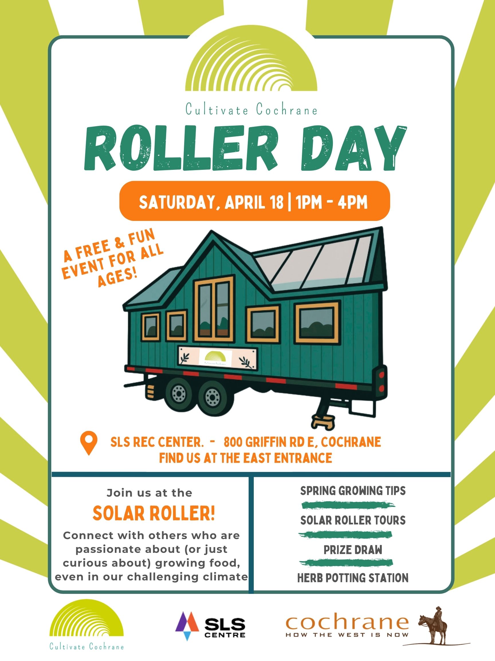 Cultivate Cochrane Society is a local nonprofit organization that teaches people about food sustainability and gardening in a very tough climate, and advocates for the same. Every year, we host Roller Day to showcase our current mobile solar greenhouse and programming. It will be a fun day with a variety of family-friendly activities, plus tours of the solar roller. If people want to see more of us, we are at many events throughout the summer, listed on our website under 'Connect With Us.'